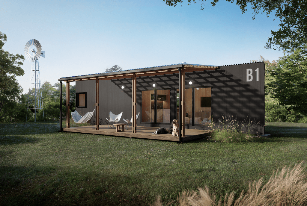 La Casa Bucólica se instala separada del suelo y con excelentes materiales de terminación.